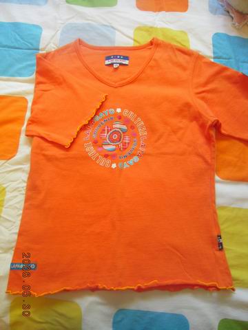 *大米粒* 知名会员 注册 2005-08-06 消息 926 荣誉分数 1 声望点数 128 2008-05-29 #29 好像是国内的牌子,Lapagayo,橘黄色的T恤,颜色很亮的~ 160/90 M码 穿过1次~~ 5刀 附件 旋转 DSCN0199.JPG 28.9 KB · 查看: 312