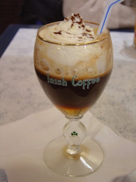 irish coffee应该很多酒吧都有.以前国内昆仑饭店酒吧的酒保还会玩这个.调这个咖啡的时候,讲究把酒点燃,然后把点燃的火球从一个杯子抖到另外一只手中的 杯子里,两只杯子相据越远越高级,然后再加咖啡和奶.多个酒保同时表演这个相当好看.