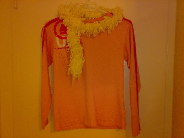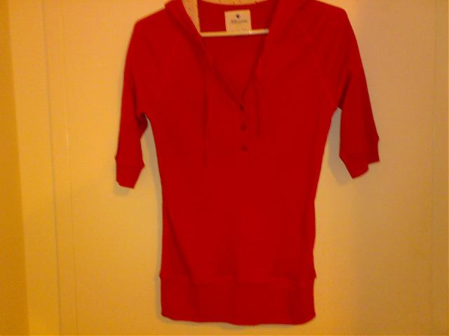 全新桃红色半袖翻帽衬衣,和上面那件一起买的,还是号儿小了,5刀,适合春秋穿