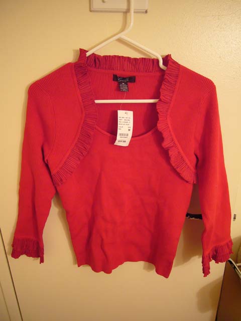 红色长袖针织衫