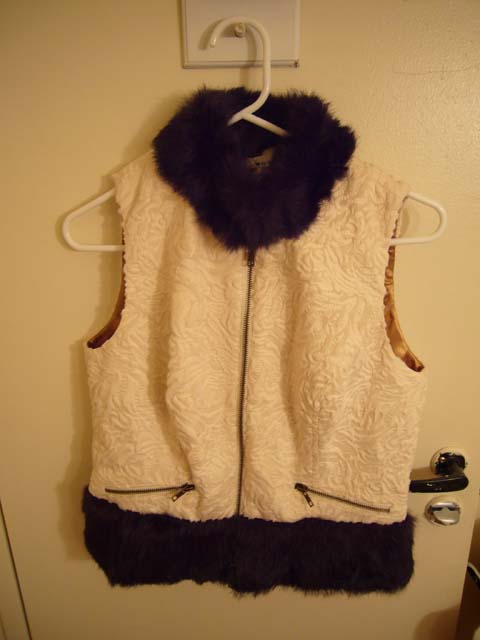 米白色暗花 黑色毛领 薄马甲