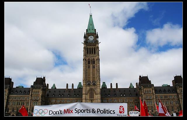是啊,我们为什么要来OTTAWA?!有些人甚至在网上都说我们是被共产党洗了脑,被共产党利用了。但是,我却认为,我们的活动与共产党无关。不管现时谁在统治着中国,好党,坏党,都毫无关系!我们要的是让世界知道,第一,西藏是中国的一部分,永远永远!第二,奥运不管在任何地方开,都没人有权去抵制它,因为那仅仅是一个不谈政治,只有拼搏、收获和喜悦的舞台,一个全世界各国健儿们苦苦奋战了数年后将要骄傲地向世人展现自己的舞台;第三,和平安定是全世界人民都向往的崇尚的,打砸抢不得人心。谎言连天更受人唾弃。