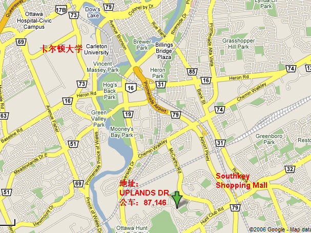 去Carleton U. 卡尔顿大学 家门口坐146路,87路至Greenboro火车站,6分钟后到达卡尔顿大学校园