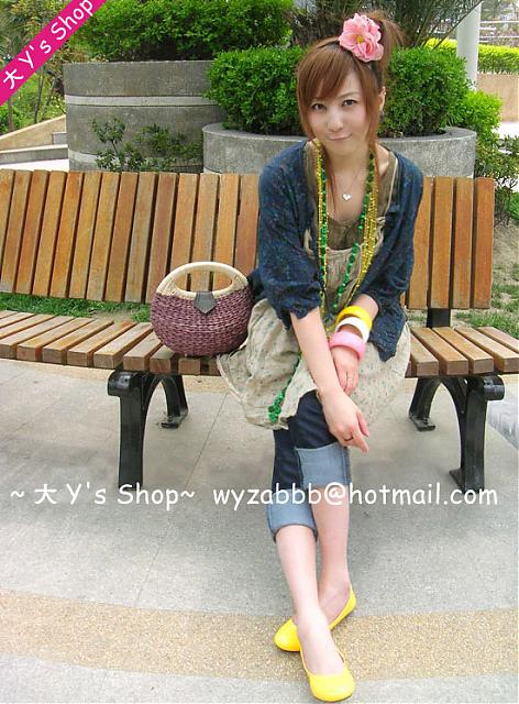 糖果平底小单鞋(嫩黄色) $28---四色入(宝蓝/白/黑/嫩黄色)