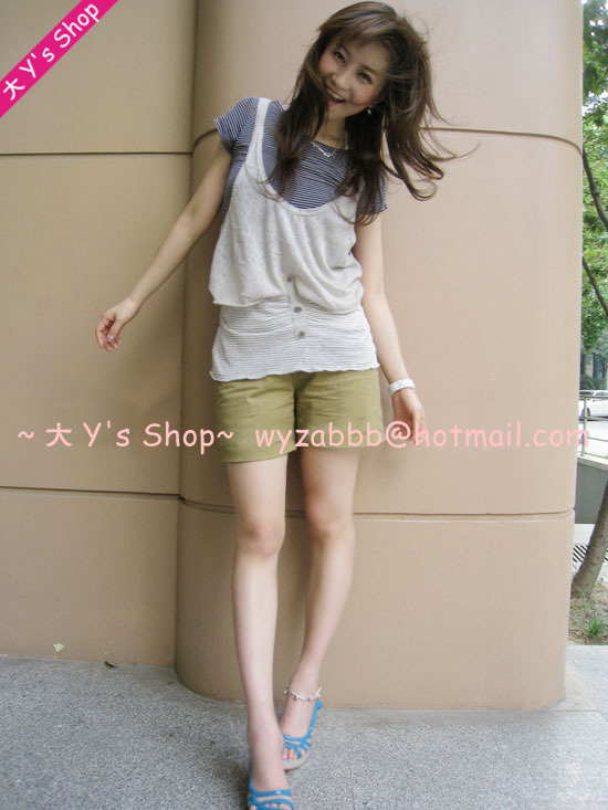 竖条纹的长款会显得人格外修长哦...领口的两粒扣子也很特别哒...