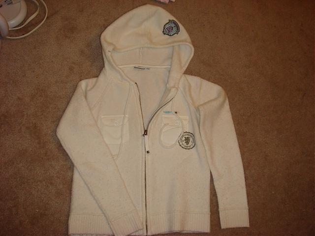 美特斯.邦威长袖带帽薄毛衣,白色,型号:160。12$