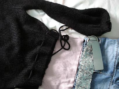 蓝色毛织tube top ( 包括 蓝色毛织勃套 )价格 10刀 棕色短裙 5刀 brand new size small for both 黑色长款hoody上衣,可以当裙子穿 5刀 size small