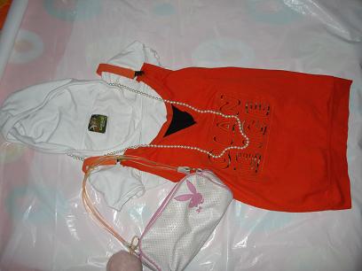 菊色背带裙 6刀 small & medium both fit -> 5 bucks for now 白色短上衣 5刀 size small -> 4 bucks bunny包 7刀 ->5 bucks 珍珠项链 2刀