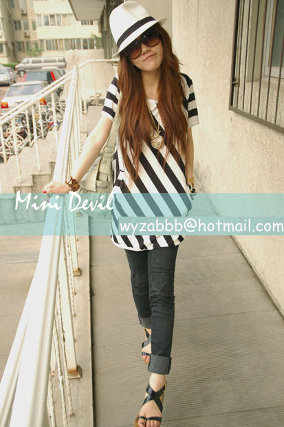 条纹的无论怎么搭都不会太过。简单又很出挑。