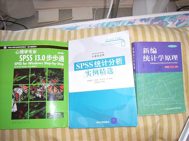 三本统计学书籍从国内邮来,每本均有400页之多,对于刚接触统计学及SPSS软件的同学非常适用,一步一步讲得很细致。两本为全新,一本国内教材。亏本大甩卖:只要$15 (价钱可议) 联系电话:613-263-5245