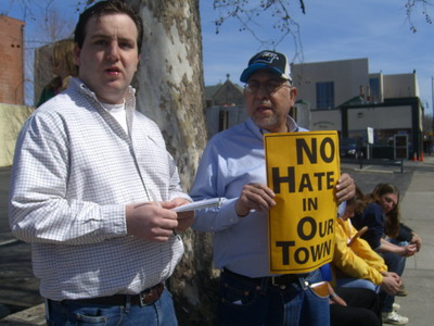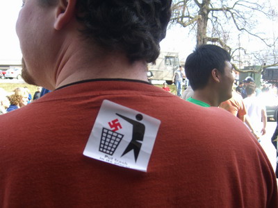 [FONT=宋体]警方批准的游行时间是3月10日中午12点到下午5点。我在12点前就赶到游行路段,只见直升飞机在上空盘旋,上百名全副武装的警察正在紧张待命,在路边 守候的还有数十名手持照相机或扛着摄像机的记者。新纳粹分子并没有准时登场,记者们转而采访前来反游行的市民们,他们那些举着“停止仇恨”、“对纳粹说 不”、“为生活在一个多元化的美国而自豪”等标语牌站在街道两侧。一位叫凯西的妇女对我说,“这些人脑子出了毛病,竟到这里来破坏我们和谐的种族关系。我 为美国有这种人感到羞耻!”另一位叫罗伯特的黑人男子说,我今天来这里不是为了闹事,而是要让这些混蛋知道他们是不受欢迎的。[/FONT]