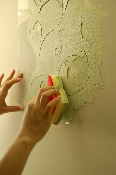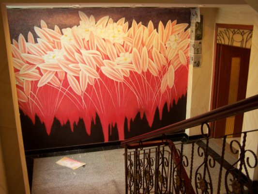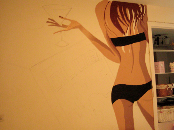 把选好的图形投影在选定的墙面上, 描出轮廓, 定好色调后,就是添色了.