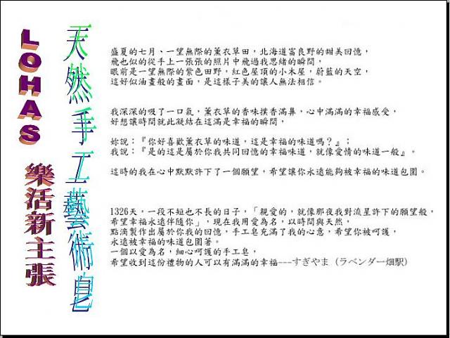 LOHAS [FONT=新細明體]樂活新主張【天然手工藝術皂】[/FONT]