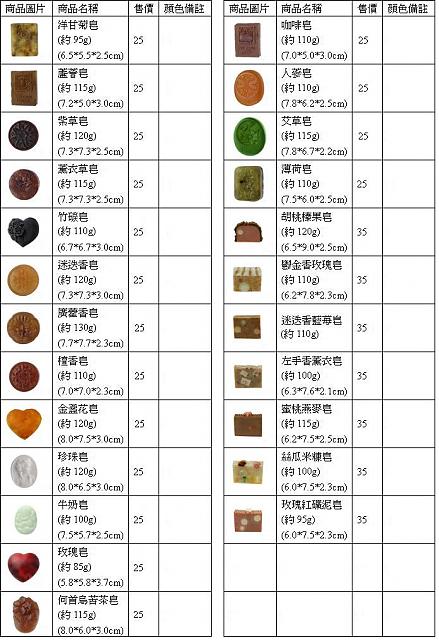 小弟想引進[FONT=新細明體]【日本天然手工藝術皂】[FONT=新細明體]因為不知道是否各位大大喜歡 所以發帖詢問各位大大 希望廣徵意見 若是反應不錯 小弟可以代為引進 因為廠商要求訂單須滿300才可以零售價格6折的批發價訂購 (圖示中的零售價格6折) 若是大大們喜歡 可以一起訂購 所以目前並無現貨 歡迎各位大大參觀討論與指教 ^^ 希望能夠徵集有興趣的朋友們一起團購 ~~~ 謝謝^_^[/FONT][/FONT]