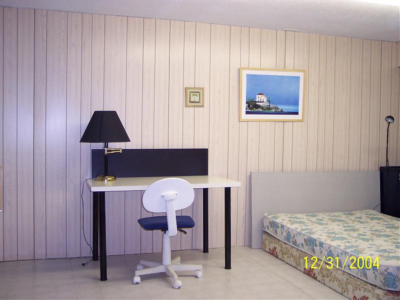 床,书桌,书架,椅子,微波炉,小冰箱,书柜,立灯,5抽屉柜子。等等等等,先贴几张以前的图