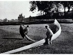 迄今最负盛名的摄影构图大师,也许是法国著名摄影家亨利卡蒂埃布勒松。在长期的摄 影实践中锻炼出了一双极其敏锐的眼睛,以至于他拍出的照片常常带有信手拈来的风格,但却都是深思熟虑的结构协调的作品。有趣的是,他的大部分作品都是用 50mm标准镜头拍摄的,而极少用35mm90mm等镜头拍摄。在摄影构图方面,布勒松有许多精辟的见解。1952年,他在《决定性的瞬间》文中指 出:一幅照片,要把题材尽量强烈地表达出来的话,必须严格地建立起形式之问的联系。摄影隐含有辨识功能,就是把真实事物世界的节奏辨识出来。眼晴的工 作,就是在大堆现实事物中,找出特定的主体,聚焦其上。照相机的任务,只不过是把眼睛所作的决定记录在胶卷上而己。正如对绘画作品一样,对待摄影作品,我 们也是将它当作整体来观看和感受的,而这个整体,我们只须一瞥便可把握。在摄影作品中,构图实际上就是眼睛所见到的不同元素的同时组合和有机组织的结果。 由于内容和形式是不可能分割的,因此,构图是不可能事后补上的,不可能作为一种补贴在基本素材之上的事后设想。换句话说,构图必须具有必然性。