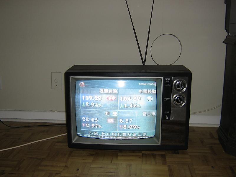 老式电视机,带无线天线,可以收到无线台,25寸电视机,$15。