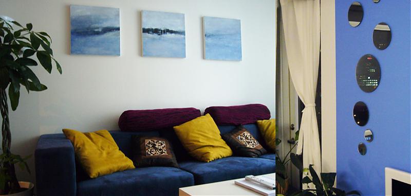 谢谢,我也没有把蓝色跟“忧郁”联系在一起,如果有什么影响我买这蓝色沙发的话应该是某种“中国文化”,他们说我生命里缺水,我想这海洋蓝也不错,趟在上面就象浮在海面,这下我有水啦吧?,另外我喜欢保留白墙,又觉得需要点蓝色绿色让眼睛得到点休息,所以弄块天空蓝的板子,这样理论上我应该是融化在大自然里,不应该有以泪洗面的担心了。