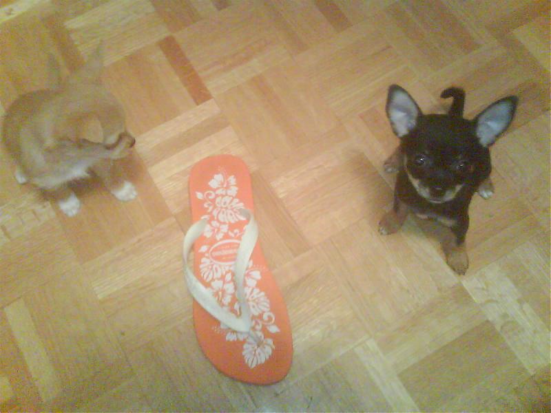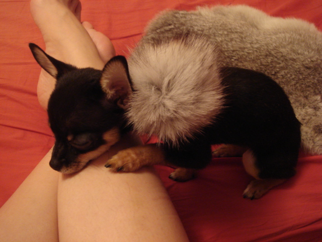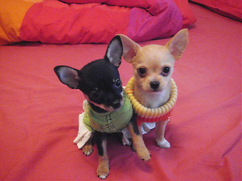 我家也养了只吉娃娃,快5个月大了,男生,和你家的一只长的好像的.