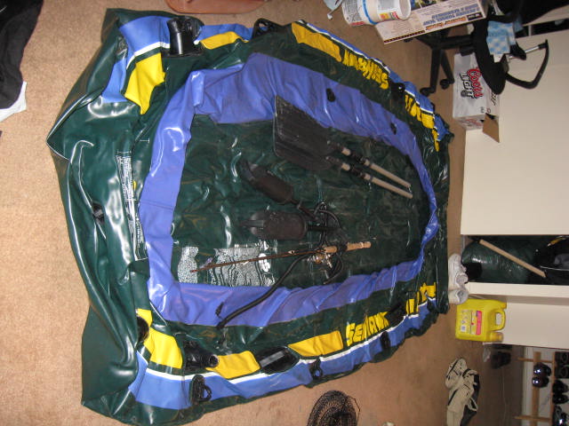 就是用来钓鱼的,收获大大的,可以去cassselman 钓鱼,湖中央,有很多walleye.很宽敞,就是打气累些,不过你可以买个电动气筒。在加一个水桶,用来拔鱼钩比较安全,不会扎破船。 或者你可以在配一个马达,就轻松了。