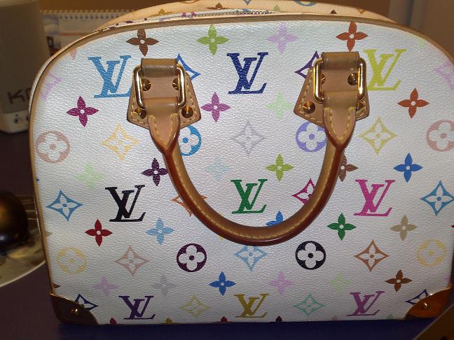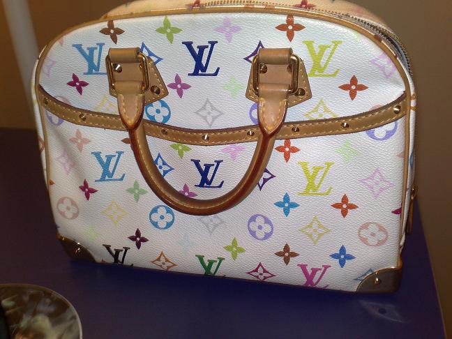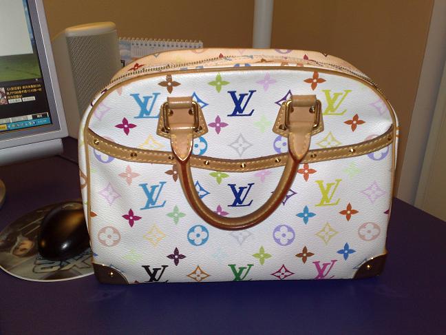 甩了,甩了,33白彩LV TROUVILLE 包包便宜卖,超便宜了原价的1/3~~~~ $550。。看看吧。。。原价的1/3,请MM不要再议价了,真得很便宜了~~~保证是真的~~没有任何的污迹和划痕,只是手柄有点脏,自己看图吧