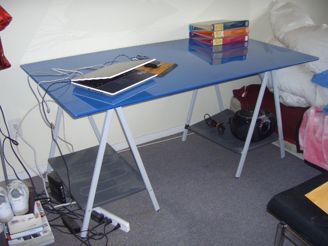 ikea big blue glass desk (140cm * 60cm): $ 50 (SOLD)