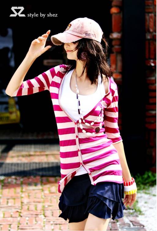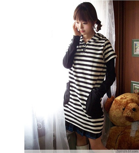 超可爱粉白条纹长款真两件套卫衣(真2件套)12刀