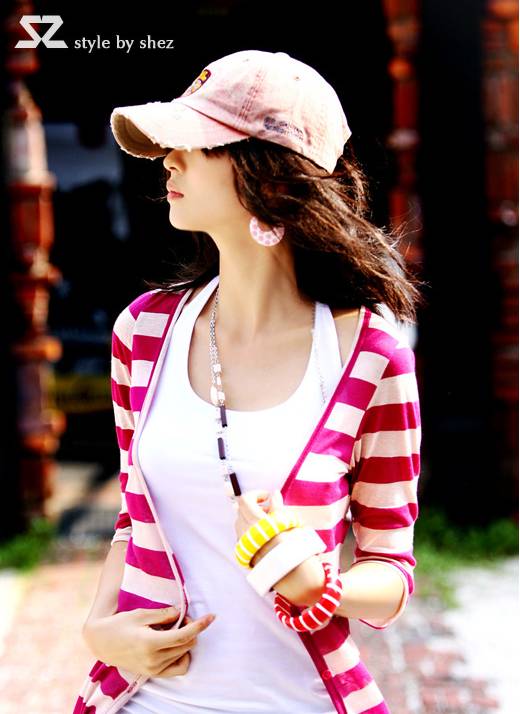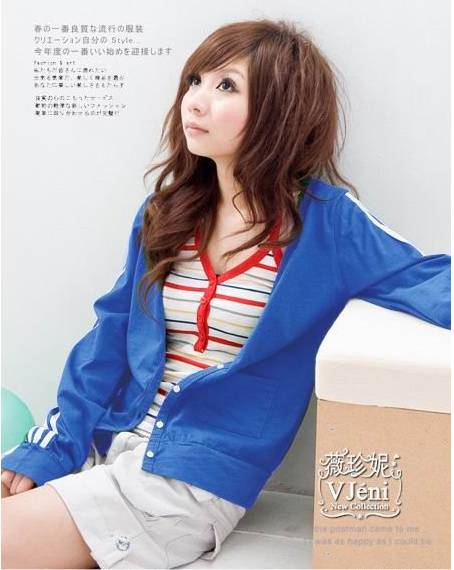 VIVI主打*超可爱兔兔耳朵条纹外套 12刀