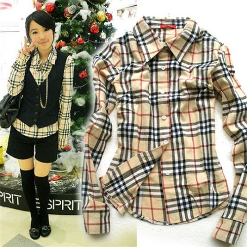 款韩版格子翻领长袖衬衫 10刀