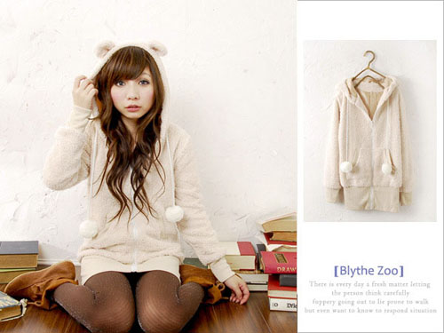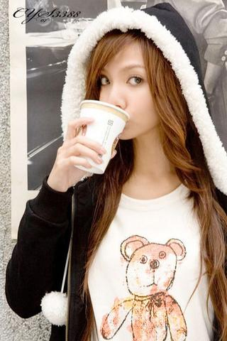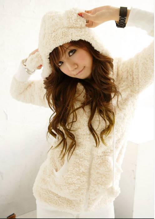 韩版可爱外型小熊熊带帽新款毛绒绒外套绒衣 18刀
