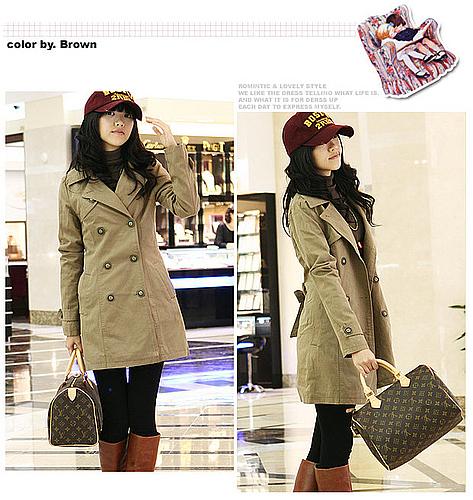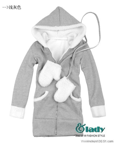 可爱背后口袋连帽加绒长款外套/风衣●配手套 18刀