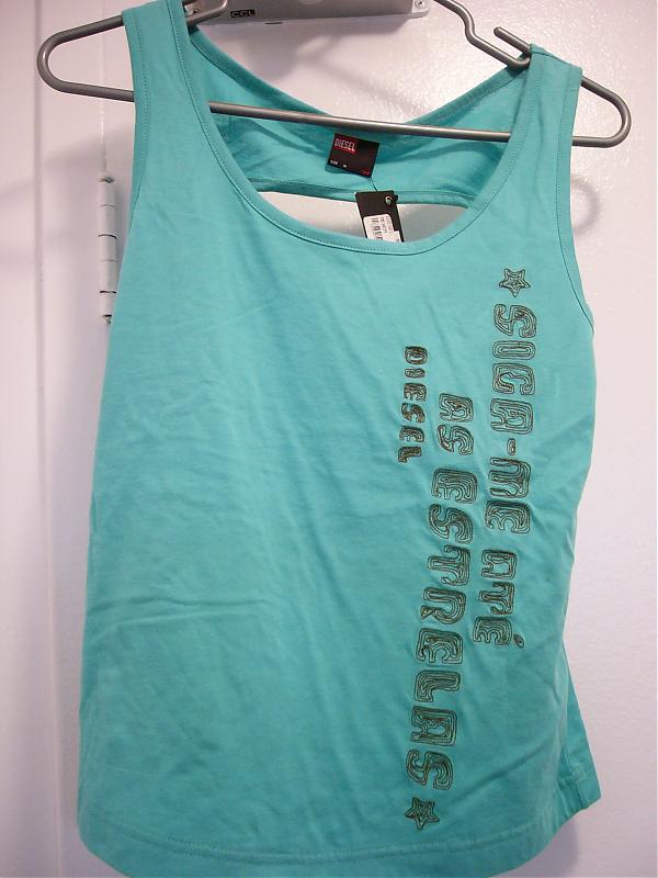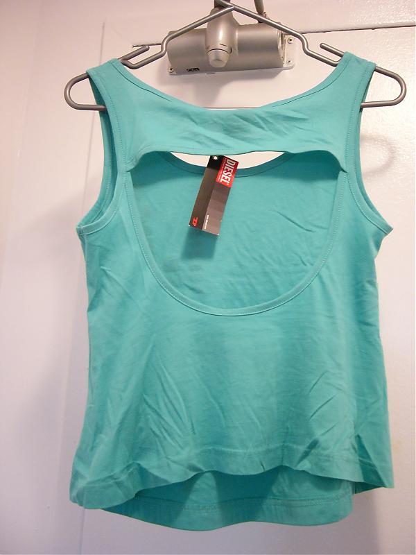 DIESE体恤,全新带吊牌,蓝绿色,和照片上有一点点差异,后背是整个衣服的亮点,可以搭配抹胸或者BIKINI。