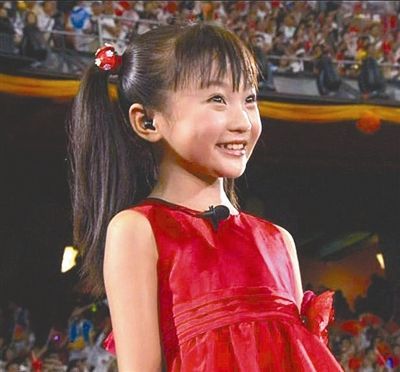 一曲旋律优美的《歌唱祖国》响彻鸟巢的上空,56名各民族儿童簇拥在五星红旗的周围进入会场。