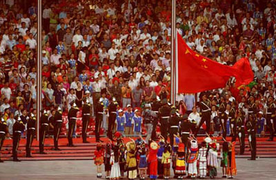 当鲜艳的五星红旗迎风飘扬,绚丽的焰火绽放出古老的中国最灿烂的表情,这个夜晚属于腾飞的中国,这份喜悦属于奥运的北京。