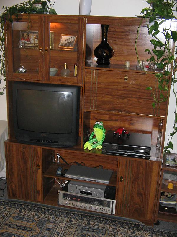 Very good condition but hole was made behind the tv to make room for it. Separates into two units for easier moving.