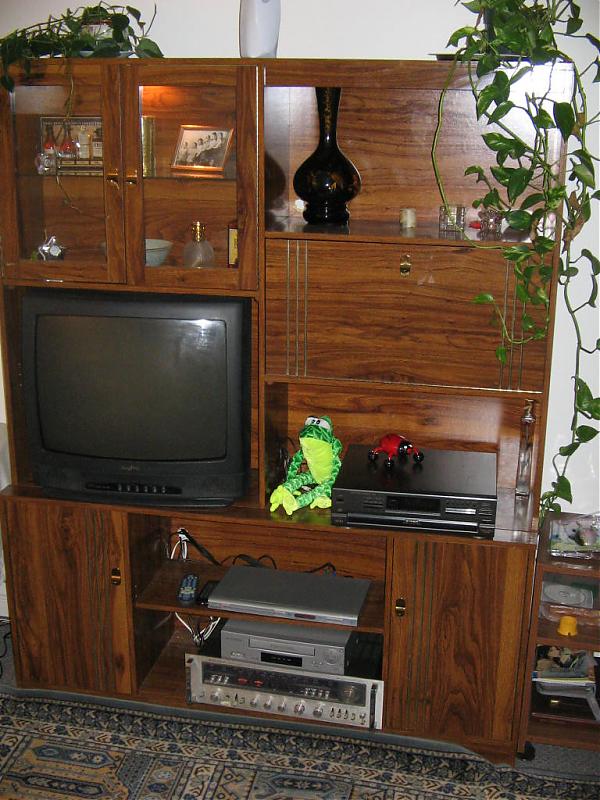 Very good condition but hole was made behind the tv to make room for it. Separates into two units for easier moving.