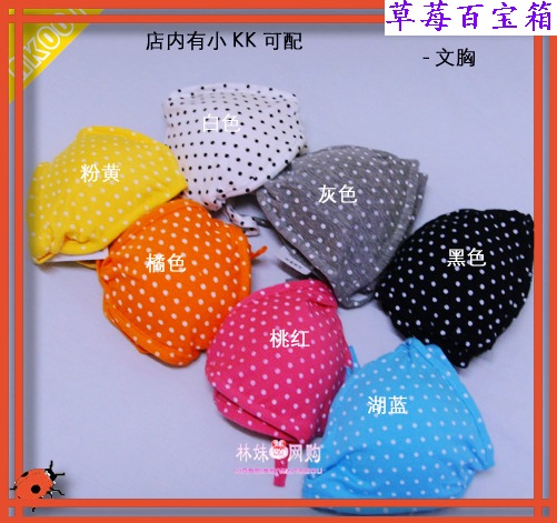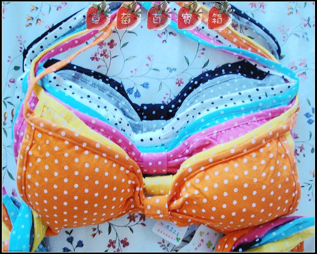 43.纯棉小圆点可爱百搭系脖比基尼 7.00元 能为你兼具清爽感与层次造型的圆点比基尼胸衣是这个夏季一定要拥有的万用配备哦..运用绕颈绑脖设计.展现令人心跳的活力小性感.里头还贴心地加入了胸垫.让胸前更加立挺美丽(可以不穿内衣,再也不怕穿低领衣服露出尴尬肩带啦^^).搭配在各式各样的上衣或洋装里都相当出色唷! 尺码:均码,ABC杯的MM都可以穿哦,带子是可以任意调整的哦 备注:棉,有垫片<可自行增减>颜色: 白 灰 SALE 6.00元