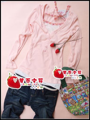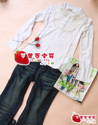 16.可爱蕾丝花边百搭绵T恤/打底衫 $38