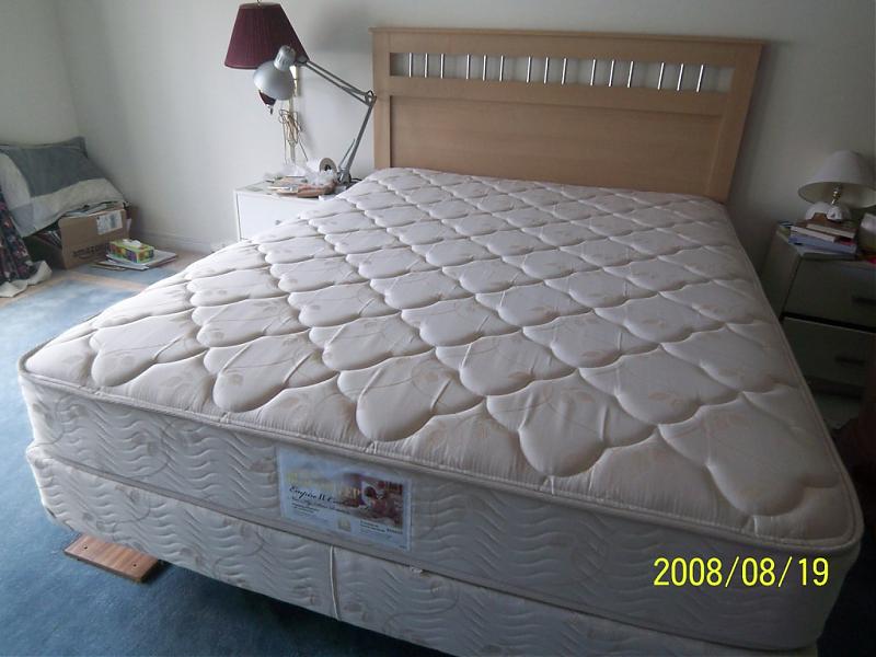 1. Queen size mattress, boxing, headboard, frame. only 6 month old. paid $ 699 +tax. sale $ 285 (sold)