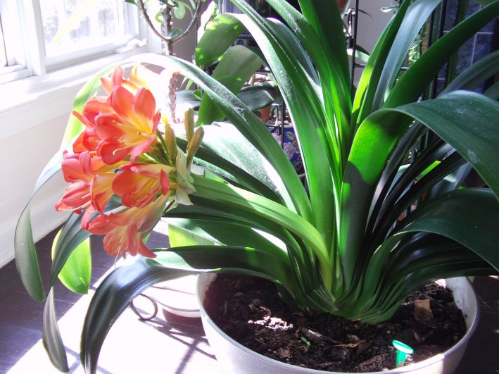 我的君子兰有一棵开花了。可惜,夹箭了。:crying::crying::p