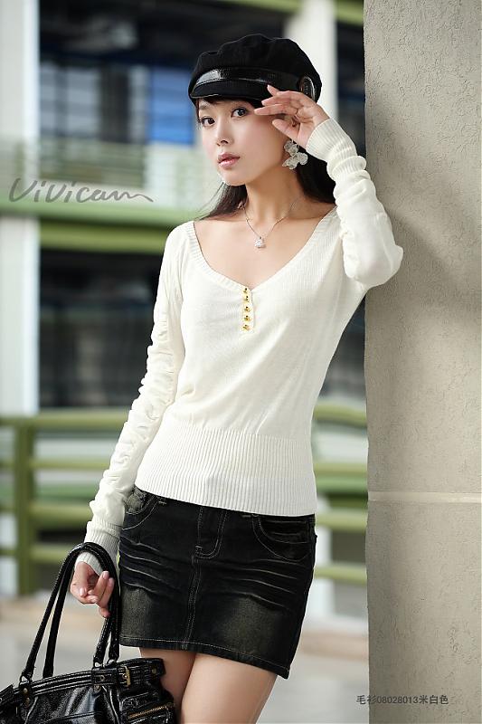 5. vivicam正品褶皱长袖开领毛衫 (断货:(