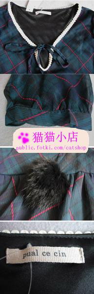 cat_emma 新手上路 注册 2005-12-05 消息 2,195 荣誉分数 4 声望点数 0 2009-03-15 #147 PDD甜美系列百褶雪纺短裙 $39 品牌:poud dou dou 尺寸:腰65-85 长39cm 质地:雪纺 颜色:粉/黑 备注DD的~做工没的说的哦~ 甜美系列哦~宽边的橡皮筋修饰。 百褶裙。垂感比较不错~~ 附件 22.jpg 62.7 KB · 查看: 39 22a.jpg 39.8 KB · 查看: 40 22b.jpg 62.1 KB · 查看: 37 22c.jpg 44.2 KB · 查看: 41 22d.jpg 26.2 KB · 查看: 41