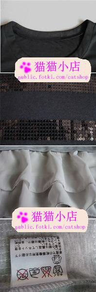 日单剪标 亮片粗横条雪纺边连衣裙 $47 尺寸:肩35 胸86 长75 袖长19CM 质地:以棉为主,下摆为雪纺 颜色:灰色/黑色 备注:哈哈亮片的设计终于让我给等到了~ 这款的黑色还是灰色都是我大爱的,无论哪个我都舍不得啊~ 无奈是原单的,数量真的很有限,哎就不和大家抢了~ 原单减标,领口有可能有拆过标的痕迹~介意的亲慎买哦~