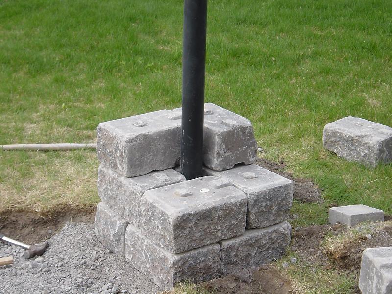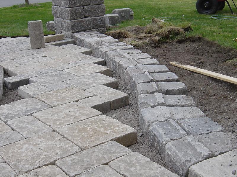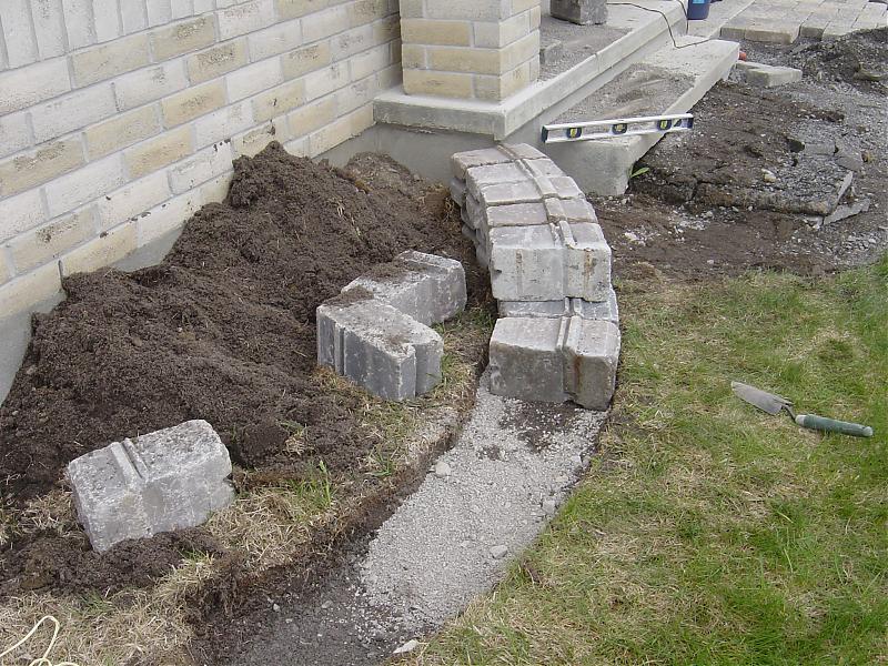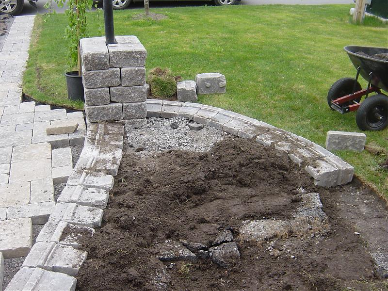 第一层台阶里需要大量的回填土,因为我把草皮拿掉后,底下的黑土放到花坛里了,加上台阶高出,大概有10寸深左右。所以我把早前掀下的沥青板铺在了最低下,又加了一寸多的土,然后是4寸深的gravel,2寸的stone dust。垃圾土和沥青基本上都用完了。:p