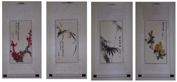 [FONT=宋体][FONT=宋体]传统中国轴画,大小不同尺寸。[/FONT][FONT=宋体]大的大约是[/FONT]76cm x 177cm[FONT=宋体],[/FONT][FONT=宋体]小的在[/FONT] 26cm x 66cm [FONT=宋体]左右。已经装裱好了,不需画框,可以直接悬挂。[/FONT]