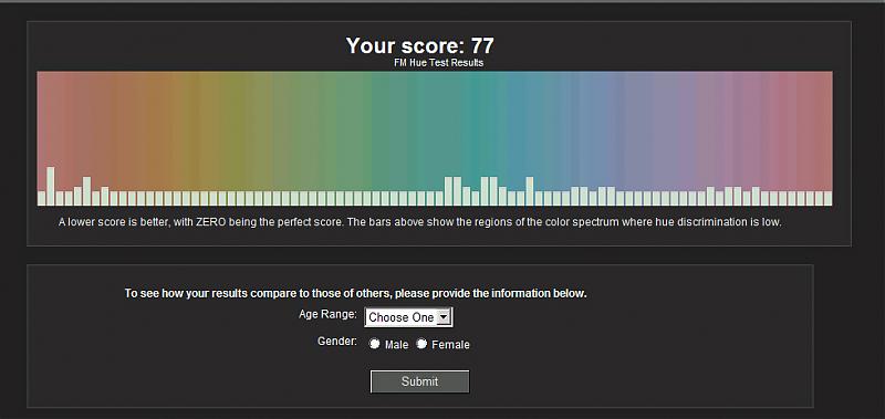 :( 24。 Had more problem in green area. 怀疑最近调照片调成色盲了...
