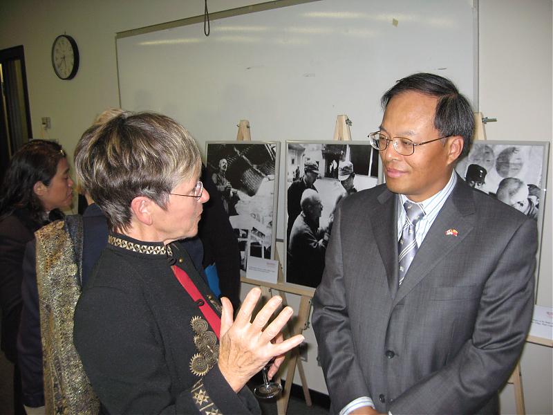 [FONT=仿宋_GB2312]为纪念白求恩大夫赴华70周年,日前中国驻加拿大大使馆在卡尔顿大学举办了纪念白求恩图片展,[/FONT][FONT=仿宋_GB2312]让更多的加拿大友人走近白求恩,了解中加关系渊源留长的历史;兰立俊大使和加中友协王若兰女士在招待会上发表了热情洋溢的讲话,他们在讲话中高度评价了白求恩大夫为中加友好关系所做出的杰出贡献。出席当天活动的有中加两国前任外交官员、议员、学者以及华人社区的代表。[/FONT]