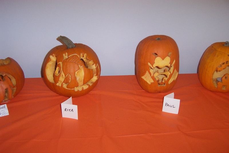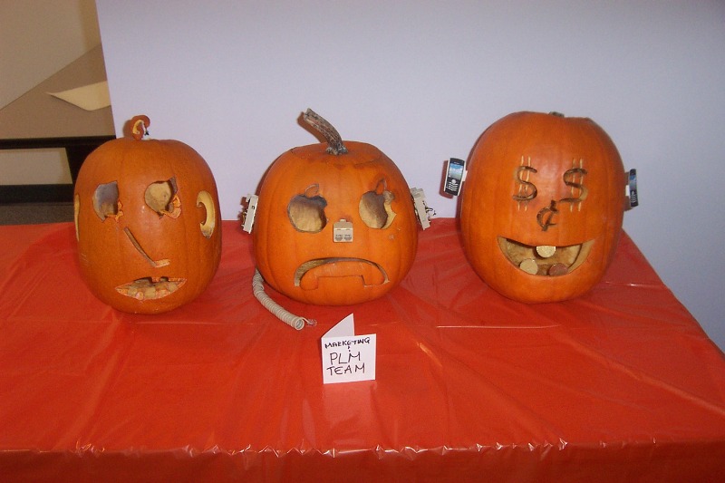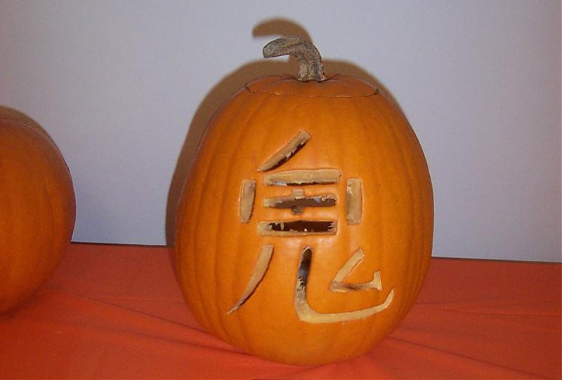 明天就到了,再不干点什麽就来不及了。抛砖引玉吧。摄影专家们,明天带着相机去要糖吗? 公司 Pumpkin Carving Contest 并列第一名.奖励? Sit down lunch served by 3 chief executives.