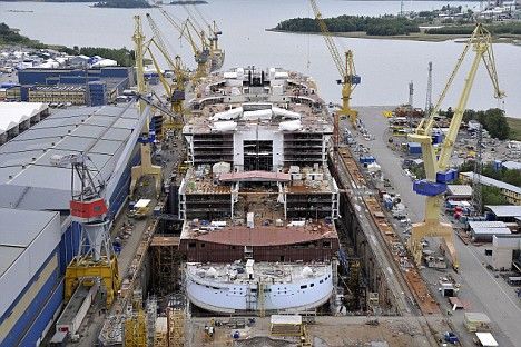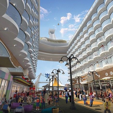 据英国《每日邮报》报道,邮轮总是一次又一次超乎想象地刷新世界记录,如今皇家加勒比海国际游轮公司目前正在芬兰造船厂建造世界上最奢华的超级游轮――"海洋绿洲号"(Oasis of the Seas)。这些惊人的图片正展示了此游轮最宏伟的创新之处。