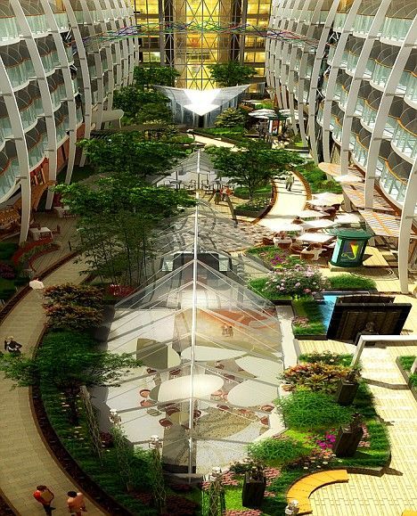 它拥有16层甲板和2700个客房,可乘载5400名乘客,其中还包括了许多两层的超级洋房,简直足以媲美城市里的家。它是首艘有7个明显分区的游 轮,分别为中央公园、木板路、皇家步行区、众多酒吧饭店、游泳池和运动区、海洋温泉与健身区、娱乐区和少年区。其中,中央公园位于游轮的第8层甲板上,公 园长达100米、宽19米。为了让公园中的植物能茁壮成长,此游轮还将采用小气候控制技术。